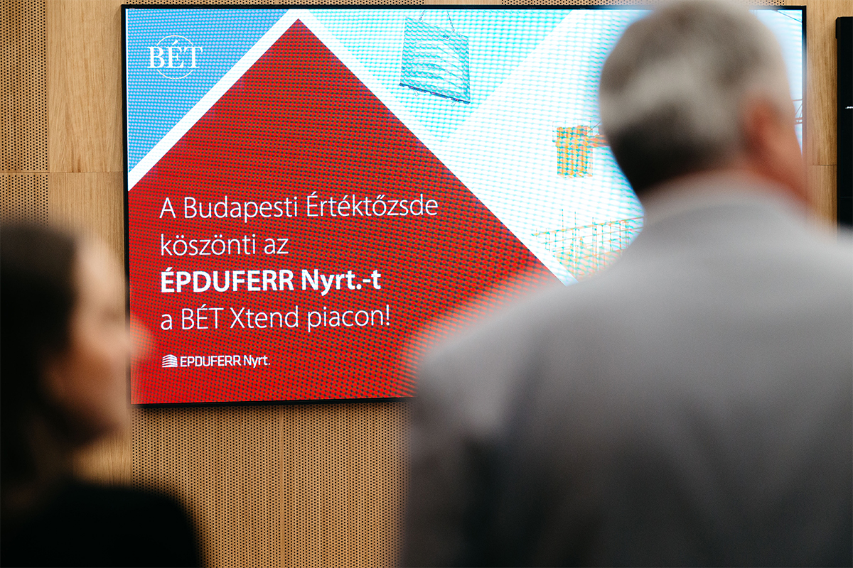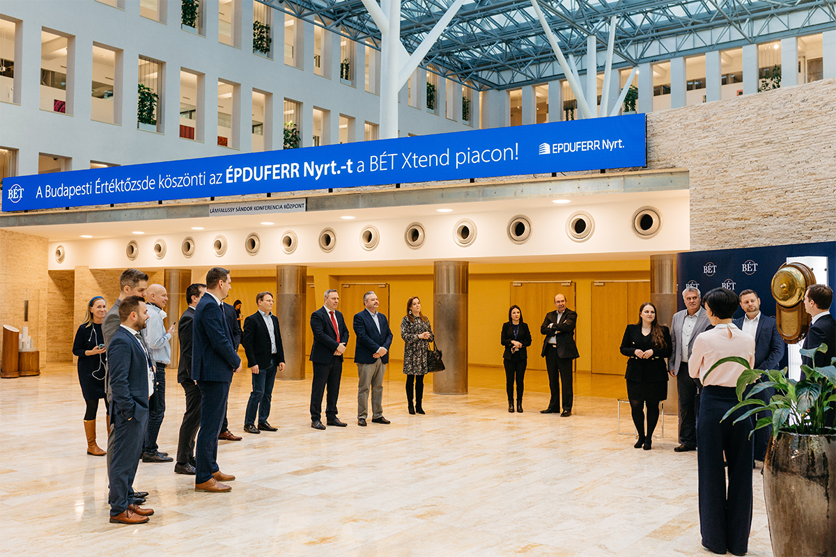 Szimbolikus csengetést követően debütáltak az Épduferr részvényei a Budapesti Értéktőzsde középvállalati igényekre szabott Xtend piacán. A csengetési ceremónián Végh Richárd, a BÉT vezérigazgatója, Palkovics Milán, az Épduferr igazgatóságának elnöke, Jutasi Zoltán, a NAVIGATOR Investments Zrt. vezérigazgatója, valamint Jobbágy Dénes, a Széchenyi Alapok elnök-vezérigazgatója vett részt a rendezvényen.